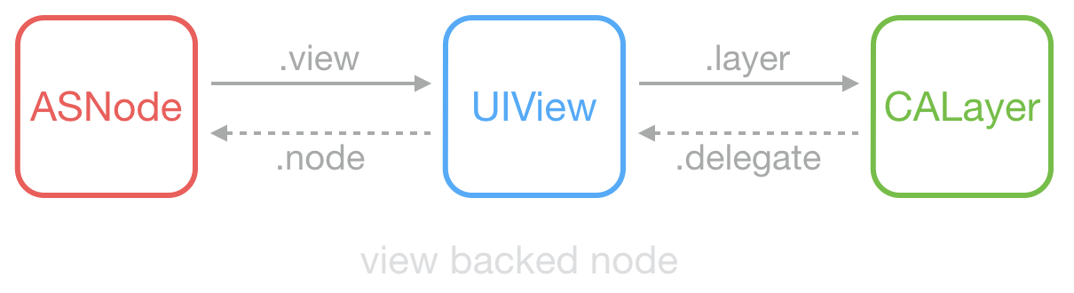 ASDK 为此创建了 ASDisplayNode 类,包装了常见的视图属性(比如 frame、bounds、alpha、transform、backgroundColor、superNode、subNodes 等),然后它用 UIView—>CALayer 相同的方式,实现了 ASNode—>UIView 这样一个关系。